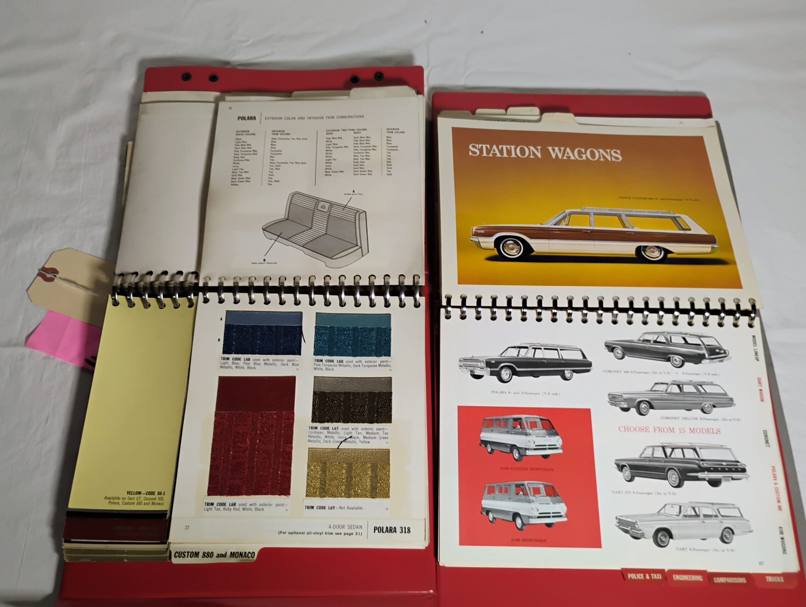 1965 Dodge Dart, Coronet, Polara, Custom 880, Monaco, Trucks, Dealer Showroom, Data Book, Color & Upholstery Book.